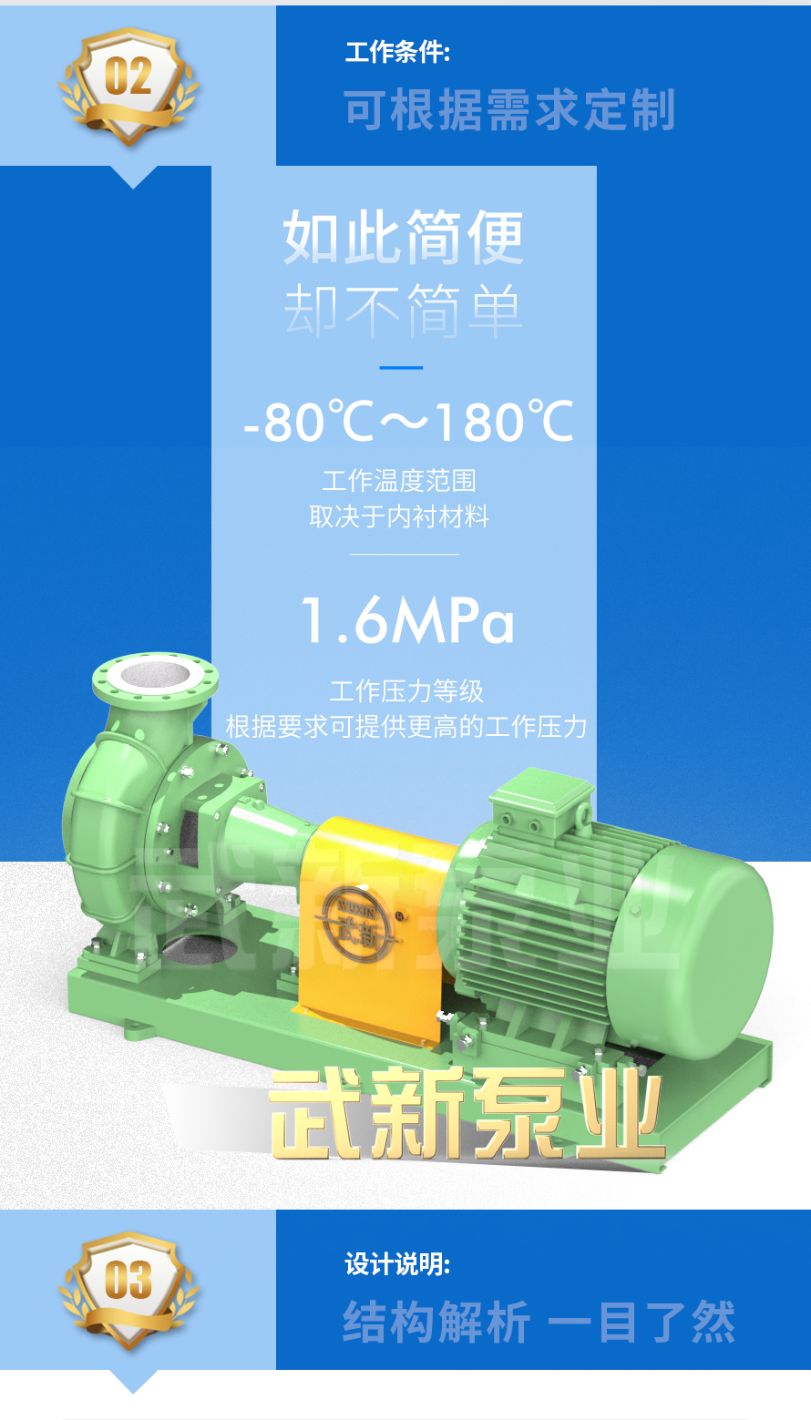 單級、單吸,與電機直聯(lián)為一體,安裝在短底座的牢固結構形式;