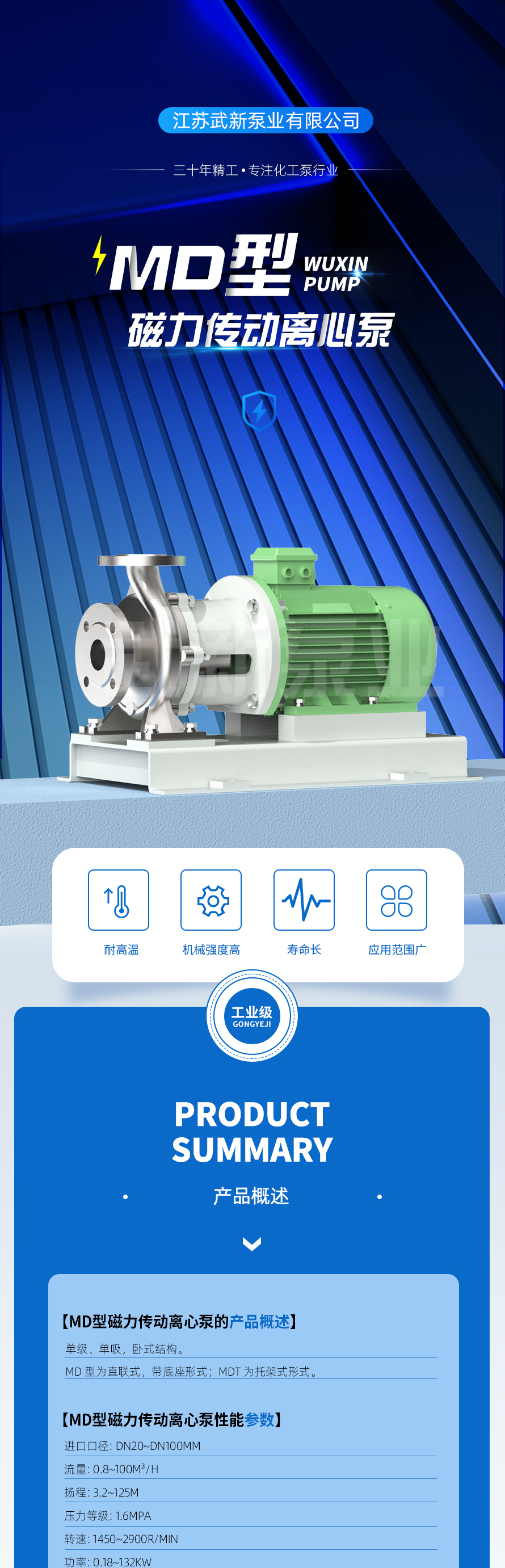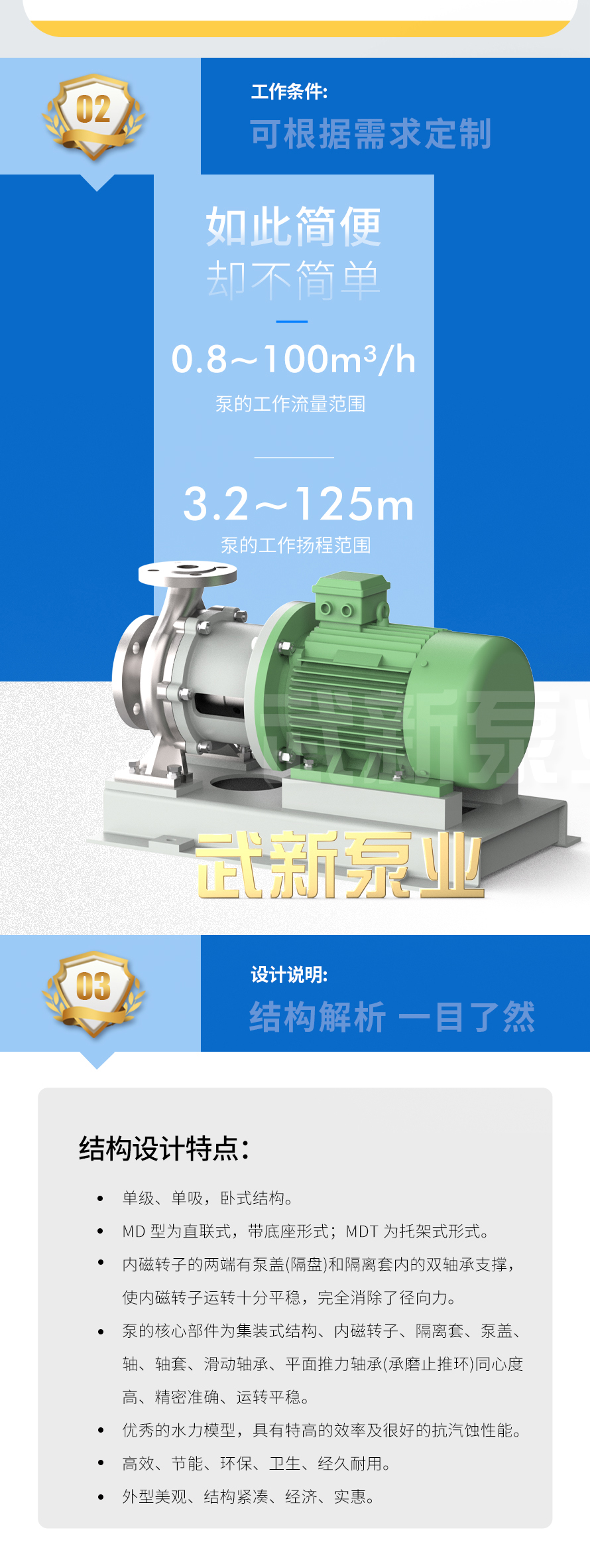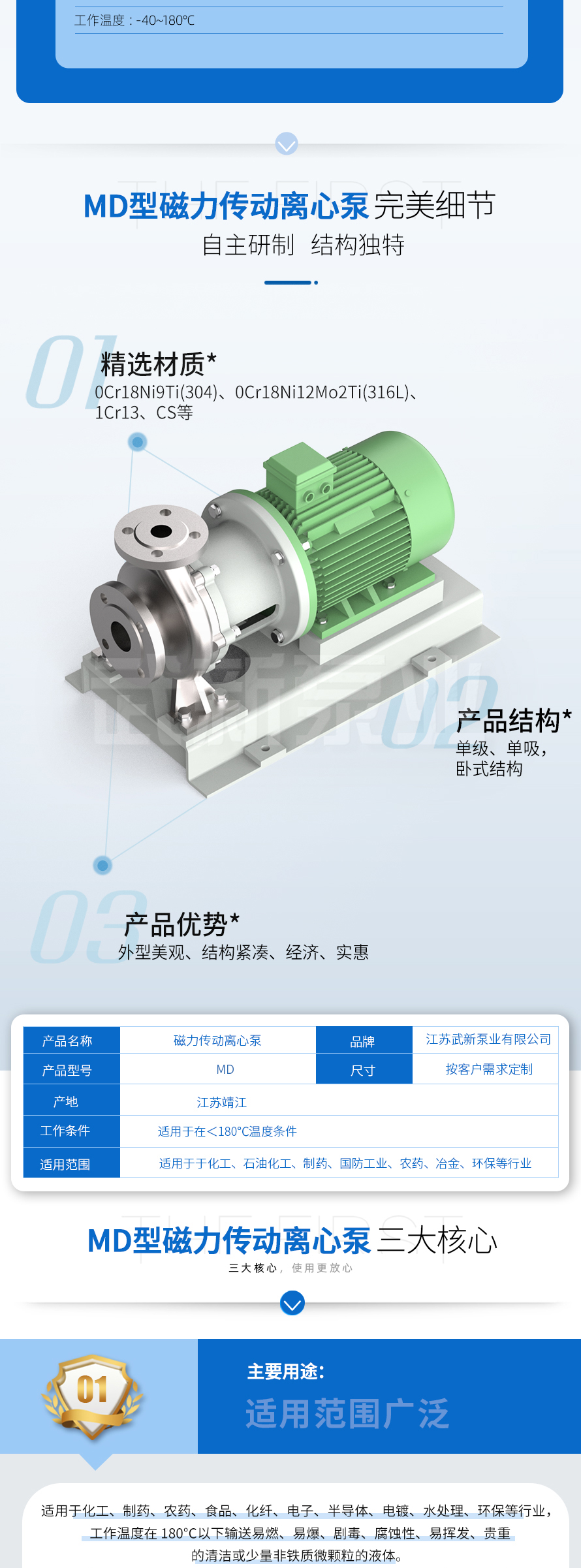 MD型磁力傳動單級、單吸臥式離心泵,是我公司吸收、消化國外磁力泵的結(jié)構(gòu)及優(yōu)秀的水利模型,“拉推磁路”精心設(shè)計開發(fā)出的高效、節(jié)能、衛(wèi)生、環(huán)保、經(jīng)久耐用的一種新穎可靠的磁力傳動離心泵。